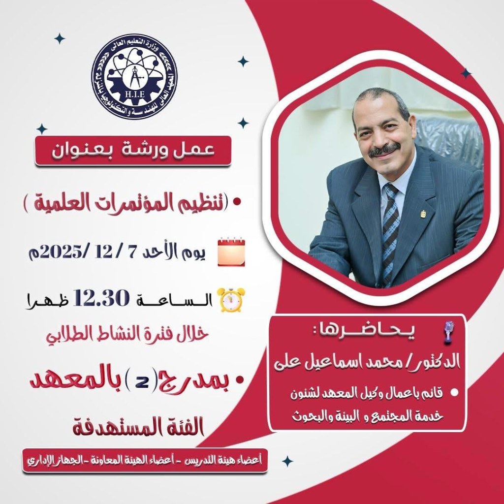 تسر إدارة المعهد، بالتنسيق مع وحدة الجودة، أن تعلن عن عقد ورشة عمل بعنوان: (تنظيم المؤتمرات العلمية)
