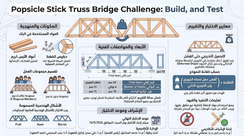 التحدي ليس مجرد بناء كوبري من “خشب الآيس كريم”، بل هو تطبيق عملي حقيقي لمبادئ التحليل الانشائي